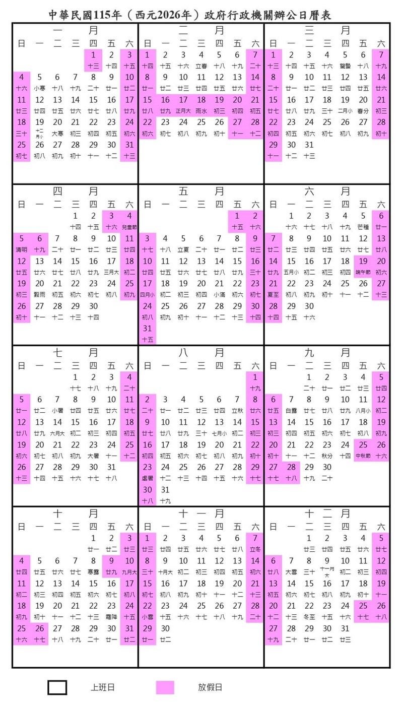 Taipei, 14 Juni (CNA) Taiwan akan memiliki sembilan libur panjang pada 2026, dipimpin Tahun Baru Imlek selama sembilan hari, Yuan Eksekutif (Kabinet) mengumumkan hari Jumat (13/6).