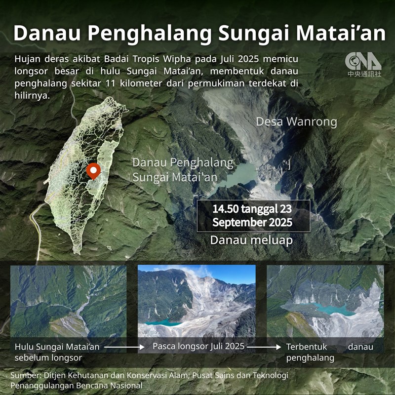 Sementara itu, Direktorat Jenderal Kehutanan dan Konservasi Alam Kantor Cabang Hualien hari Kamis menyebutkan ketinggian air di Danau Penghalang Matai’an turun menjadi 15 persen dari kapasitasnya setelah bendungan surut 104 meter, tetapi peringatan merah belum dicabut.