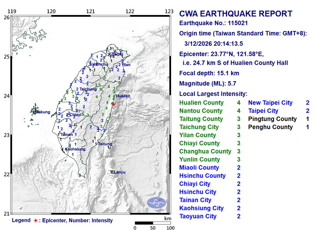 - Gempa 5,7 SR guncang lepas pantai timur Taiwan