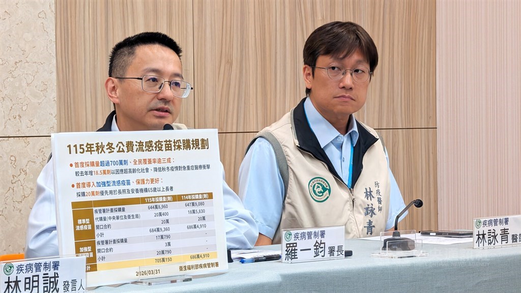 Berbicara dalam konferensi pers mingguan, Direktur Jenderal CDC Lo Yi-chun (羅一鈞) mengatakan Taiwan mengalami permintaan tinggi untuk vaksin flu tahun lalu, ketika membeli total 6,865 juta dosis.